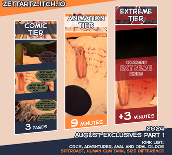 The files consists of the animation, comic, and artwork-variants, that was only available on fanbox and subscribestar for at least 6 months before being moved here (to itch io).
